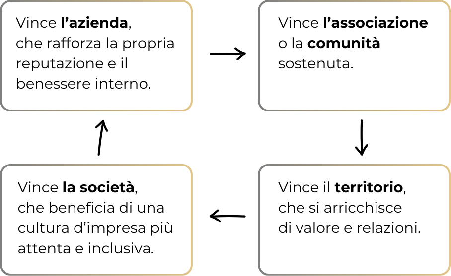 Come il suono di un gong che si propaga nello spazio, le azioni che hanno una ricaduta sociale si diffondono e lasciano un segno, influenzando il contesto in cui viviamo — le persone, le aziende, il territorio.